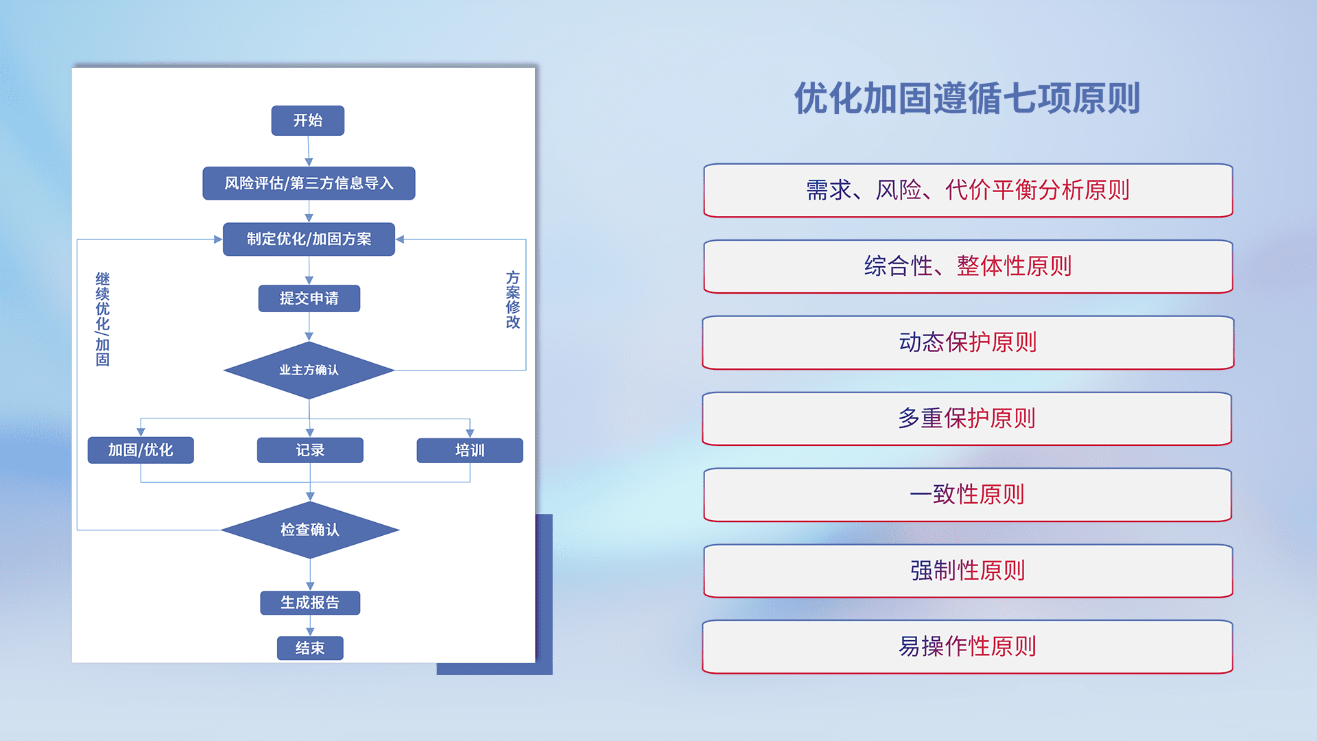 最大程度利用现有资产,,,对评估发现的问题进行封堵与整改,,防止漏洞被利用,,,提升整体网络安全性,,,,为客户带来高标准的优化加固服务。。