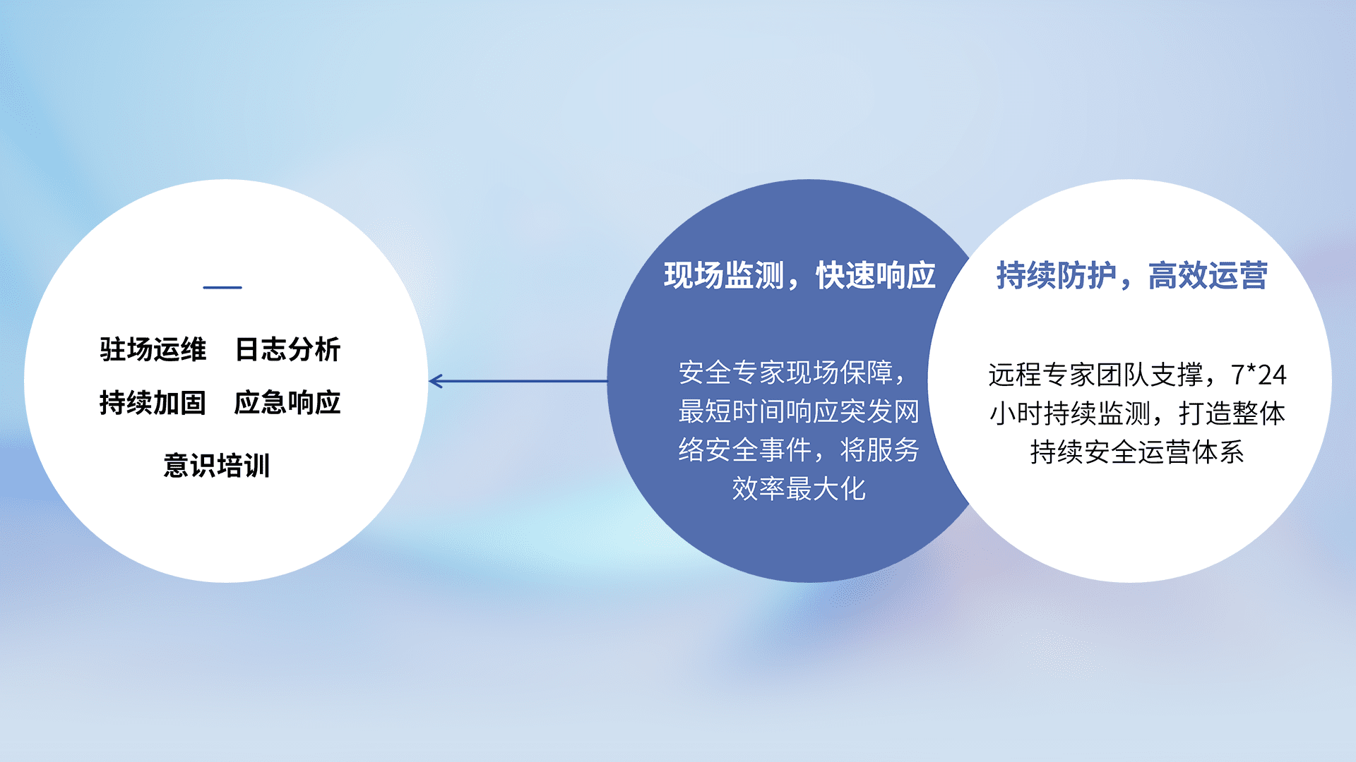 7X24小时持续监测安全事件,保持安全策略有效性,降低资产脆弱性风险,,,精准拦截黑客攻击,,,减少被黑客利用的机会,,第一时间遏制,,,,降低损失。。。